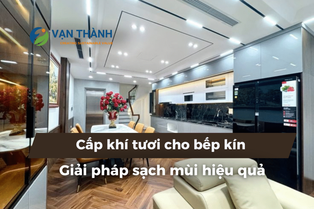 Đối với những căn nhà kín, không có giếng trời hoặc cửa thoáng, việc lắp đặt hệ thống cấp khí tươi cho bếp kín là giải pháp không khí sạch cho bếp chung cư và nhà phố rất cần thiết để duy trì môi trường sống sạch sẽ và an toàn cho sức khỏe.